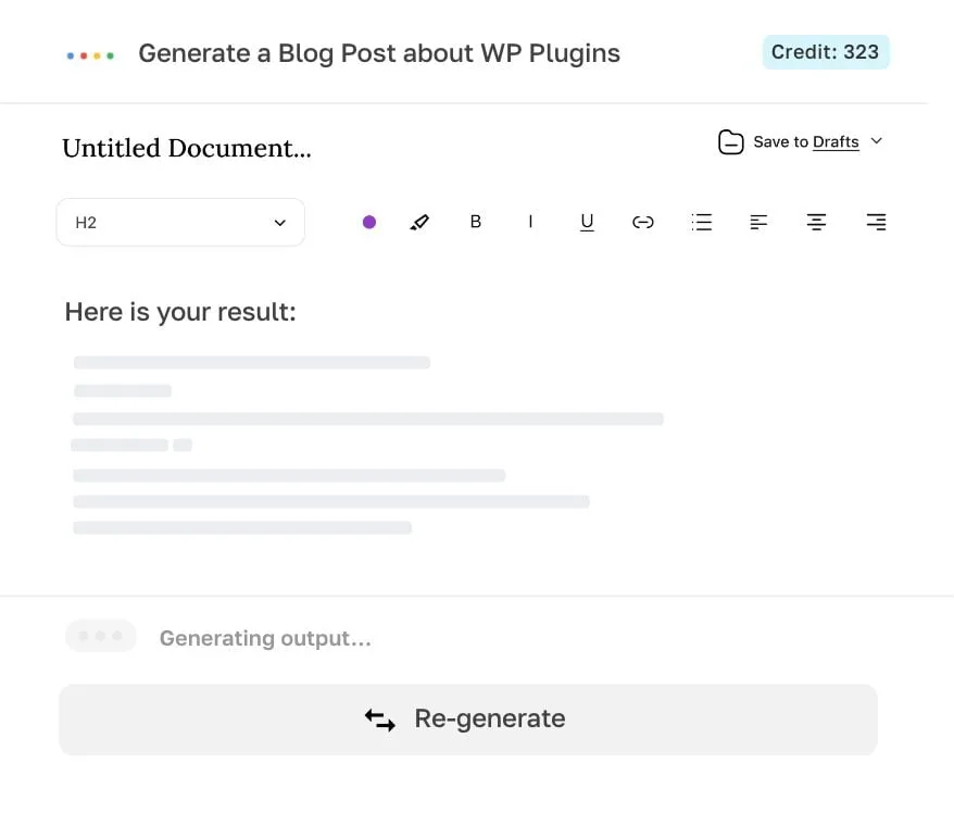 MagicAI Writer is designed to help you generate high-quality texts instantly, without breaking a sweat. With our intuitive interface and powerful features, you can easily edit, export or publish your AI-generated result.